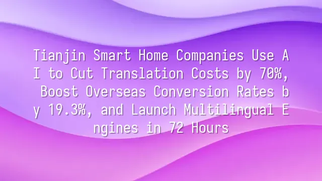 Tianjin Smart Home Companies Use AI to Cut Translation Costs by 70%, Boost Overseas Conversion Rates by 19.3%, and Launch Multilingual Engines in 72 Hours