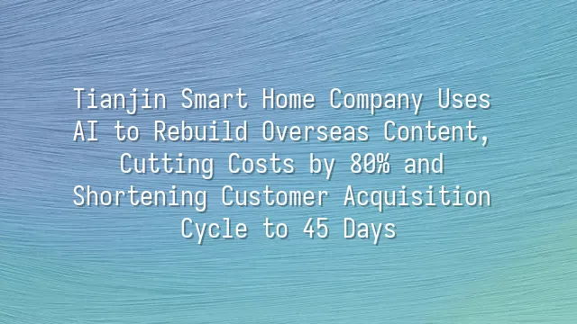 Tianjin Smart Home Company Uses AI to Rebuild Overseas Content, Cutting Costs by 80% and Shortening Customer Acquisition Cycle to 45 Days