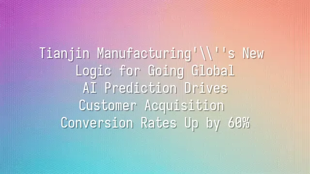 Tianjin Manufacturing's New Logic for Going Global: AI Prediction Drives Customer Acquisition Conversion Rates Up by 60%