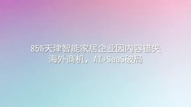 85%天津智能家居企业因内容错失海外商机,AI+SaaS破局