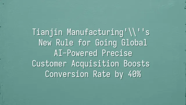 Tianjin Manufacturing's New Rule for Going Global: AI-Powered Precise Customer Acquisition Boosts Conversion Rate by 40%