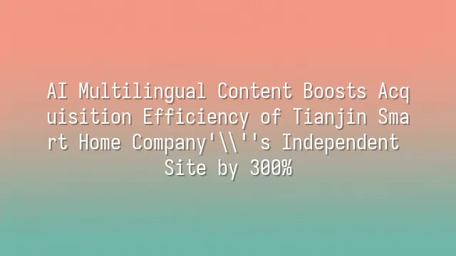 AI Multilingual Content Boosts Acquisition Efficiency of Tianjin Smart Home Company's Independent Site by 300%