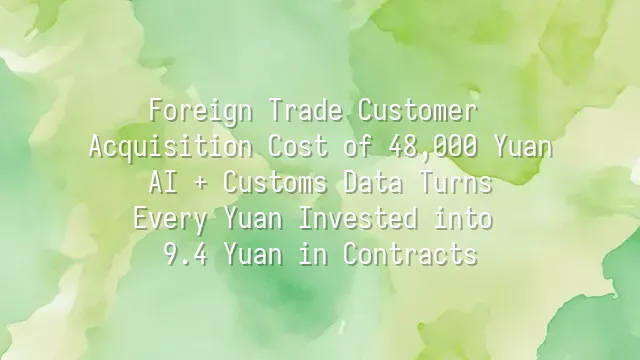 Foreign Trade Customer Acquisition Cost of 48,000 Yuan? AI + Customs Data Turns Every Yuan Invested into 9.4 Yuan in Contracts