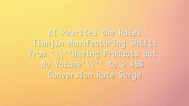 AI Rewrites the Rules: Tianjin Manufacturing Shifts from 'Having Products but No Volume' to a 45% Conversion Rate Surge