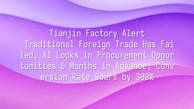 Tianjin Factory Alert: Traditional Foreign Trade Has Failed, AI Locks in Procurement Opportunities 6 Months in Advance, Conversion Rate Soars by 300%