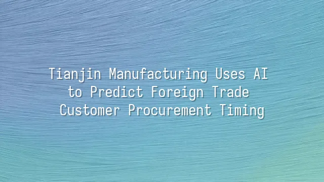 Tianjin Manufacturing Uses AI to Predict Foreign Trade Customer Procurement Timing