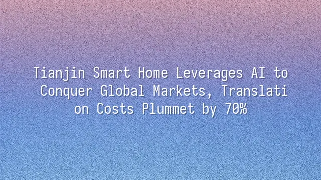 Tianjin Smart Home Leverages AI to Conquer Global Markets, Translation Costs Plummet by 70%