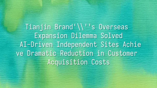 Tianjin Brand's Overseas Expansion Dilemma Solved: AI-Driven Independent Sites Achieve Dramatic Reduction in Customer Acquisition Costs