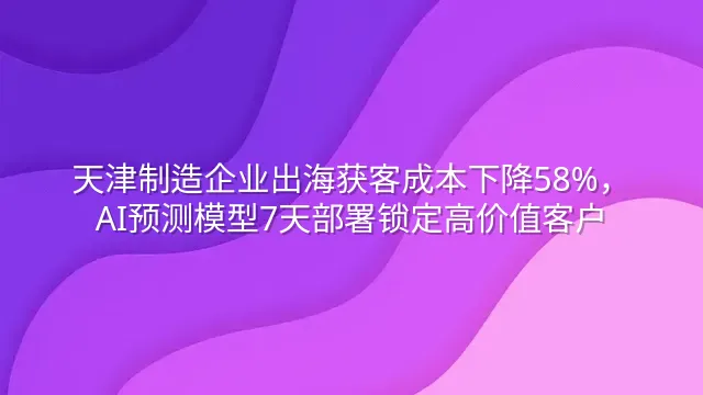 天津制造企业出海获客成本下降58%,AI预测模型7天部署锁定高价值客户