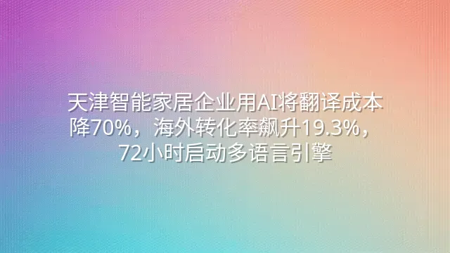 天津智能家居企业用AI将翻译成本降70%,海外转化率飙升19.3%,72小时启动多语言引擎