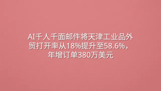AI千人千面邮件将天津工业品外贸打开率从18%提升至58.6%,年增订单380万美元