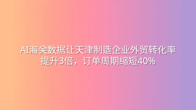 AI海关数据让天津制造企业外贸转化率提升3倍,订单周期缩短40%