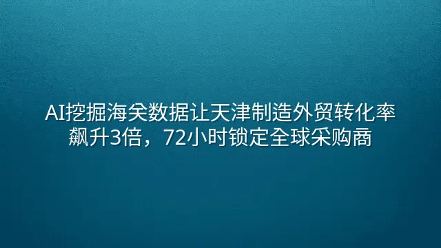 AI挖掘海关数据让天津制造外贸转化率飙升3倍,72小时锁定全球采购商