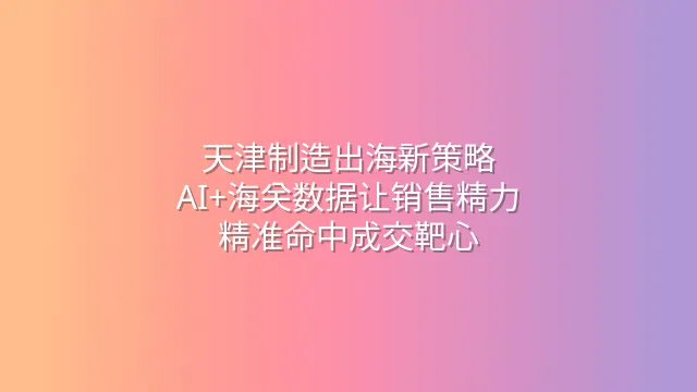 天津制造出海新策略:AI+海关数据让销售精力精准命中成交靶心