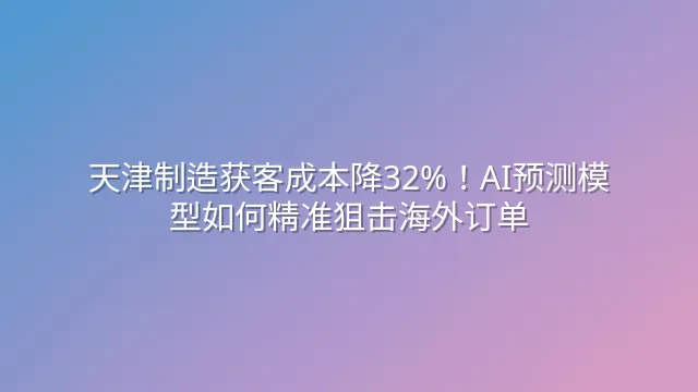 天津制造获客成本降32%!AI预测模型如何精准狙击海外订单