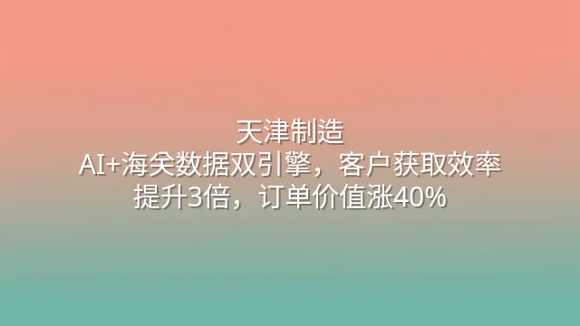 天津制造:AI+海关数据双引擎,客户获取效率提升3倍,订单价值涨40%