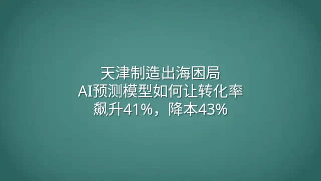 天津制造出海困局:AI预测模型如何让转化率飙升41%,降本43%