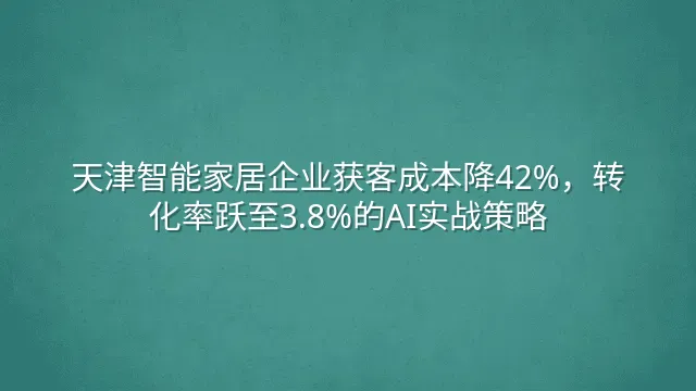 天津智能家居企业获客成本降42%,转化率跃至3.8%的AI实战策略