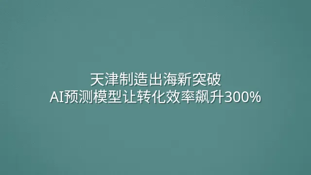天津制造出海新突破:AI预测模型让转化效率飙升300%