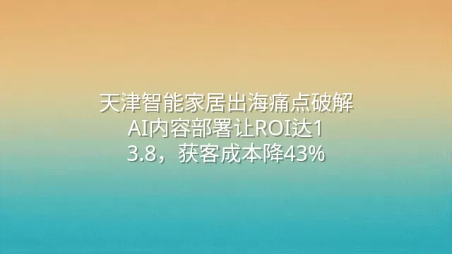 天津智能家居出海痛点破解:AI内容部署让ROI达1:3.8,获客成本降43%