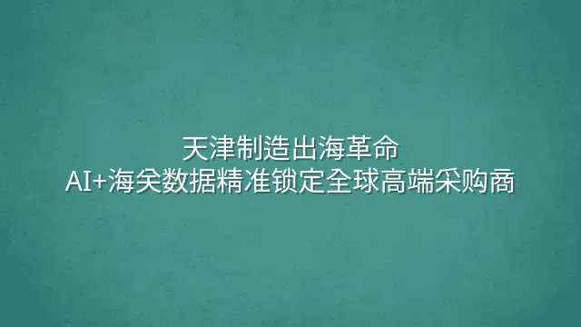 天津制造正借助AI与海关数据,精准锁定全球高端采购商。从被动响应到主动出击,一场由数据驱动的出海革命正在滨海新区悄然展开。