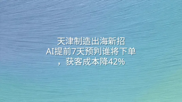 天津制造出海新招:AI提前7天预判谁将下单,获客成本降42%