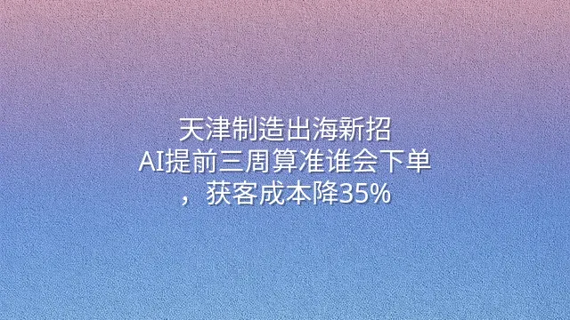 天津制造出海新招:AI提前三周算准谁会下单,获客成本降35%
