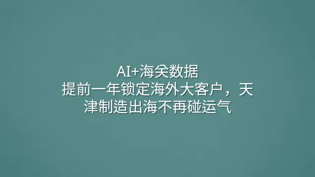 AI+海关数据:提前一年锁定海外大客户,天津制造出海不再碰运气