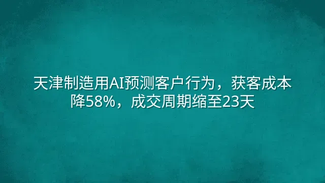 天津制造用AI预测客户行为,获客成本降58%,成交周期缩至23天